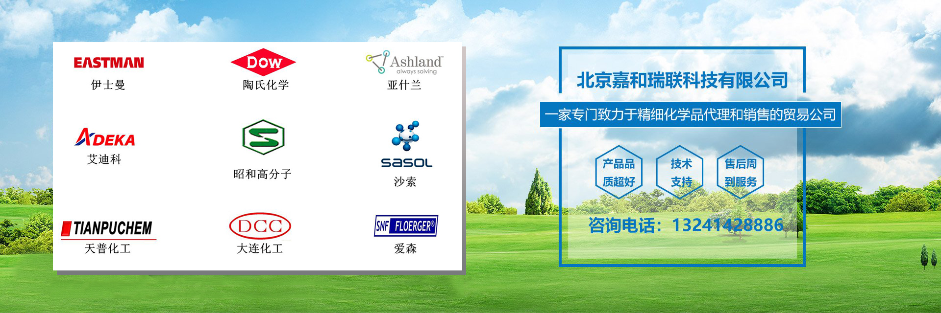 北京嘉和瑞联科技有限公司是一家成立于2008年的民营高科技企业,专门致力于精细化学品的专业性代理和销售,秉承绿色、环保、健康的经营宗旨,积极引进国内外优良产品,与美国伊士曼、陶氏化学、亚什兰、日本艾迪科、昭和高分子、南非沙索、法国爱森、大连化工、北方天普等国内外知名化工公司密切合作,凭借优异的产品和专业的服务,为广大客户提供周密的产品解决方案。让我们共同关注新产品、新领域,积极引导环保化学品的使用,共同致力于绿色环保化工事业的发展。