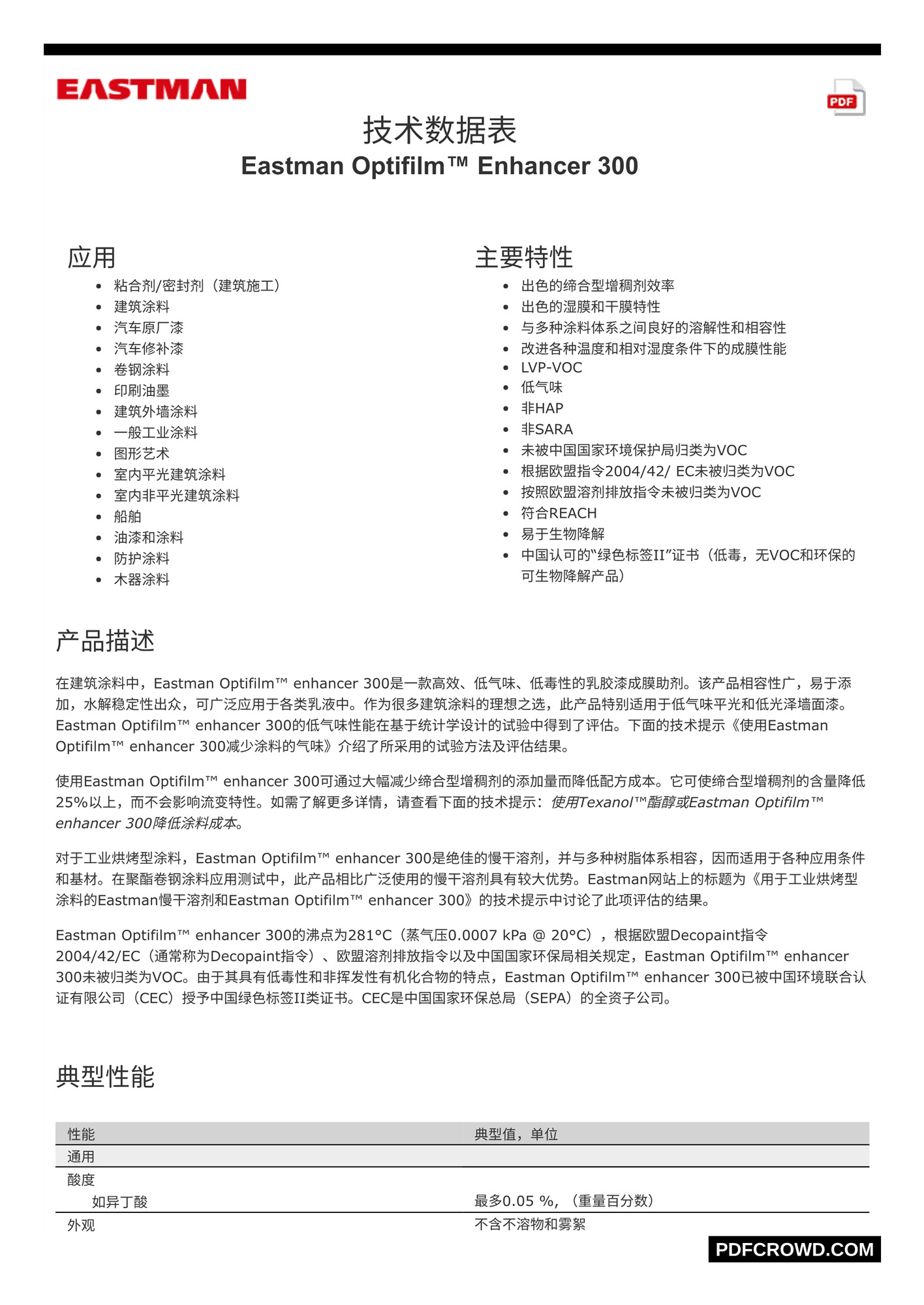 零 VOC 环保型成膜助剂 OE 300
