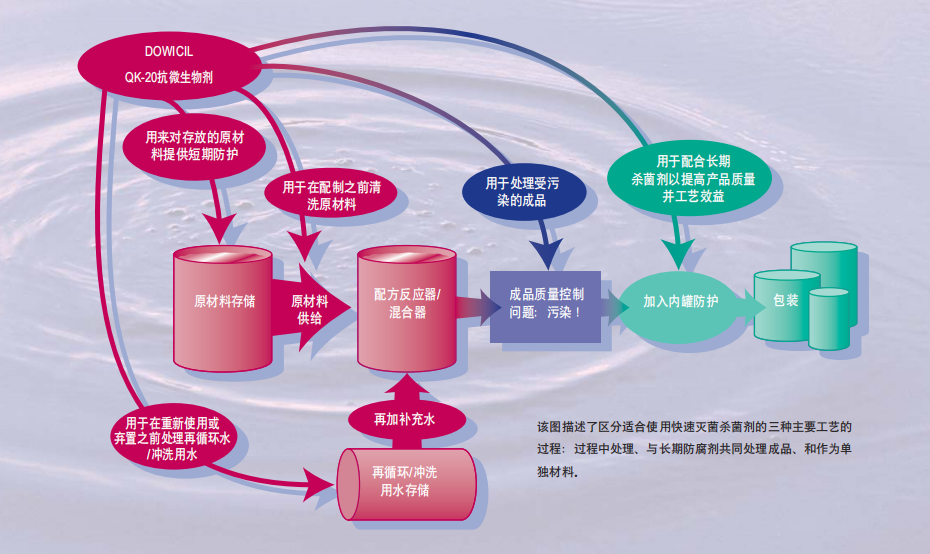 DOWICIL QK-20 抗微生物剂的典型使用场所,如下图所示: